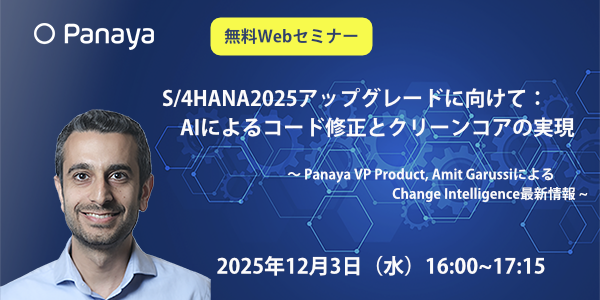 TOP セミナー・イベント セミナー・イベント 受付中 2025年12月3日(水)S/4HANA 2025 アップグレードに向けて:AIによるコード修正とクリーンコアの実現 セミナー オンライン アーカイブ配信中 2025年10月23日(木)Excel更新に追われ工数を浪費するERPやWebシステムのテスト運用、まだ続けますか? セミナー オンライン ライブ終了 2025年10月8日(水)RISE移行と2025アップグレード ― AIと自動化でSAP戦略を現実解にするPanaya セミナー オンライン ライブ終了 2025年10月2日(木) ERPプロジェクトの成功を阻む”属人化テスト”からの脱却 セミナー オンライン ライブ終了 2025年9月24日(水)ECCからの移行はもとより移行後も安心な方法、教えます! SAP S/4HANA移行セミナー セミナー オンライン ライブ終了 2025年9月2日(火)ERPプロジェクトの費用増大を招く、属人化したアナログテストから抜け出す方法とは? セミナー オンライン アーカイブ配信中 2025年6月26日(木)開催 【S/4HANA案件の黄金期到来!】提案で差をつけるためのSIセミナー セミナー オンライン ライブ終了 2025年8月6日(水)SAP NOW AI Tour & JSUG Conference Tokyo イベント グランドプリンスホテル新高輪・高輪 国際館パミール ライブ終了 2025年5月29日(木)SAPアップグレードや運用の改修時に潜む“影響調査・テスト漏れ”をどう防ぐか セミナー オンライン 受付終了 2024年12月18日(水)開催 次世代SAPプロジェクトへ:AI時代の自動化戦略 セミナー 1 2 3 >